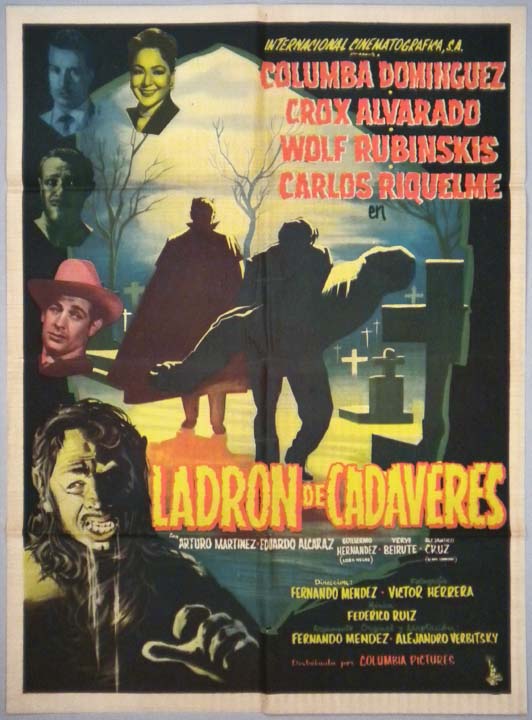 Rare horror film poster has excellent, atmospheric graphics and a great image of the monster! This classic Frankenstein / masked wrestler / lucha libre film is one of the greats -- voted by Mexican critics as one of the two best Mexican horror films ever produced. This poster has some wear and several small repaired tears along the fold lines -- but these flaws are not too noticeable on the front and the onesheet will still display well... This movie starred Columbia Dominguez, Crox Alvarado, Wolf Ruvinskis and Carlos Riquelme. $150 $95