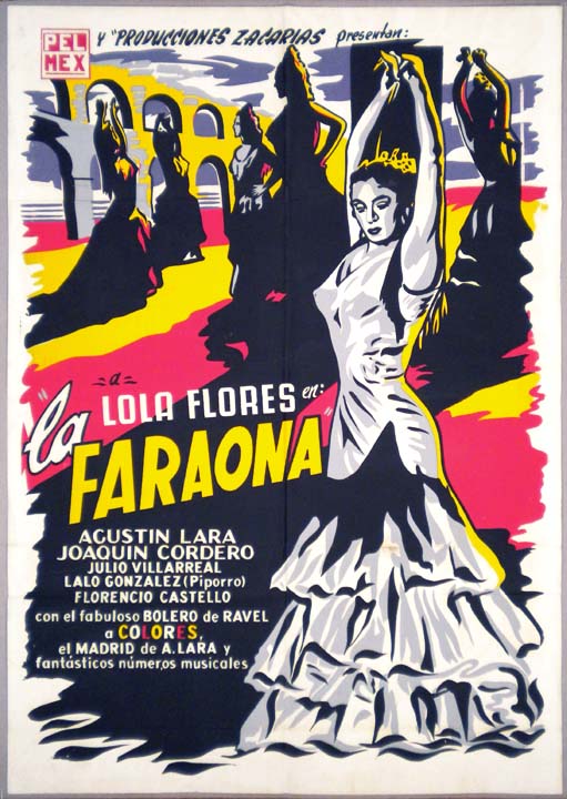 Stylish musical film poster features a striking image of sexy Lola Flores, as a Flamenco style dancer. This is a 'screen' style poster, rather than a typical printed poster... This movie starred Lola Flores, Agustin Lara, Joaquin Cordero, Julio Villarreal, Florencio Castello and Eulalio 'Piporro' Gonzalez. $65 $45