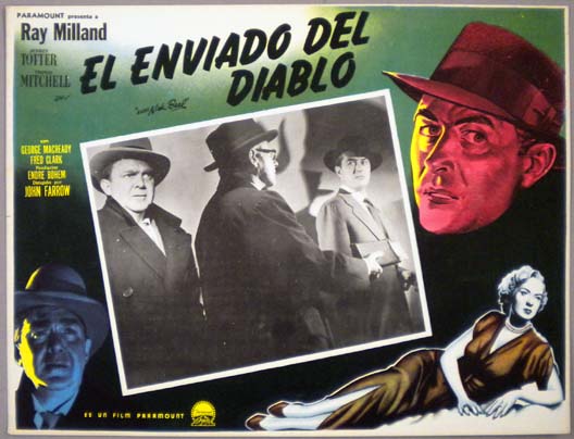 Beautiful Mexican jumbo lobby card (12.25x16.75") from the 1949 Paramount fantasy / film noir / crime movie, ALIAS NICK BEAL, which starred Ray Milland, Audrey Totter, Thomas Mitchell, George MacReady, Fred Clark and Geraldine Wall. The film was directed by Val Guest. $20 |