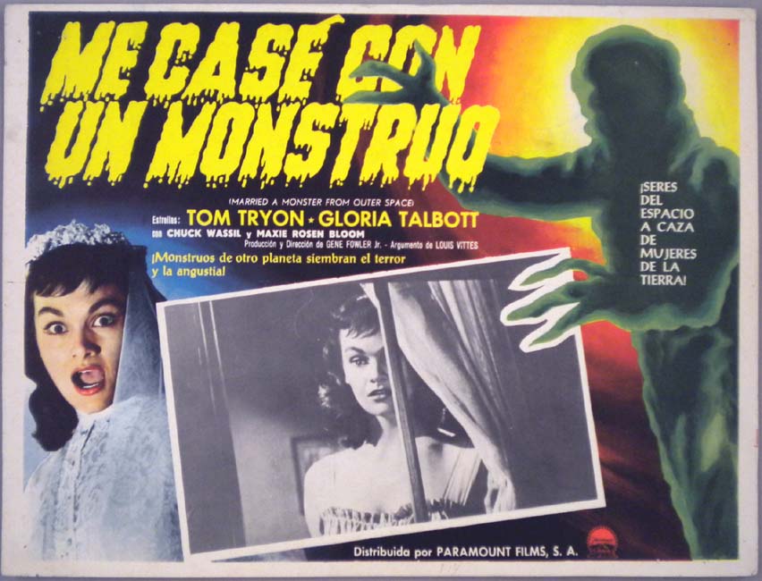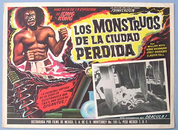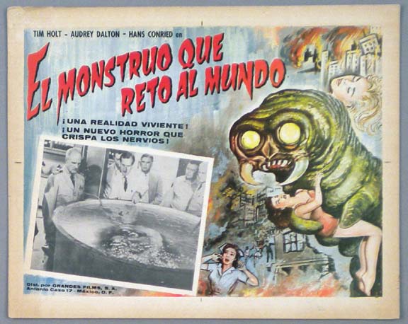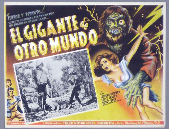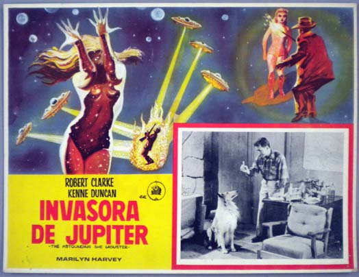 Beautiful Mexican jumbo lobby card (12x15.5") from the 1958 AIP sci-fi film, THE ASTOUNDING SHE-MONSTER, which starred Robert Clarke, Kenne Duncan, Marilyn Harvey, Jeanne Tatum and Shirley Kilpatrick. $45 |
