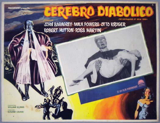 Beautiful Mexican jumbo lobby card (12.5x16.25") from the 1958 Paramount sci-fi / robot film, THE COLOSSUS OF NEW YORK, which starred John Baragrey, Mala Powers, Otto Kruger, Robert Hutton and Ross Martin. $45 |