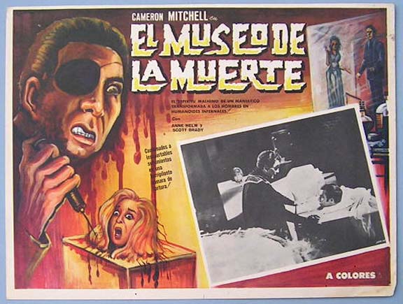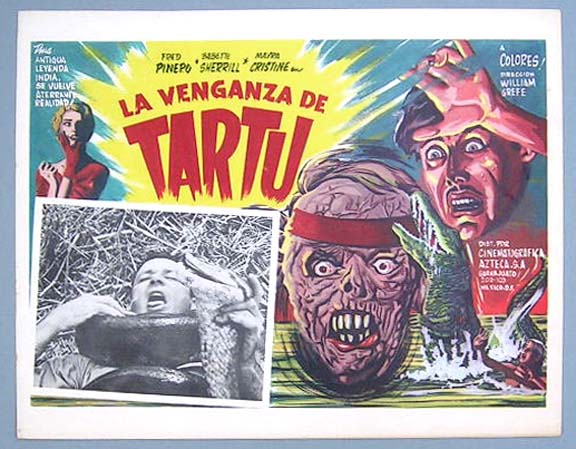 Beautiful Mexican lobby card (11x14") from the 1966 Falcon Int. horror film, DEATH CURSE OF TARTU, which starred Fred Pinero, Babette Sherrill, Mayra Gomez Kemp and Bill Marcus. The film was directed by William Grefe. $20 each |