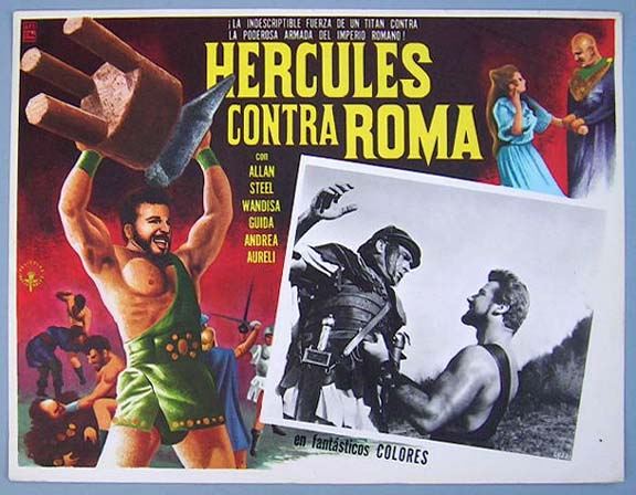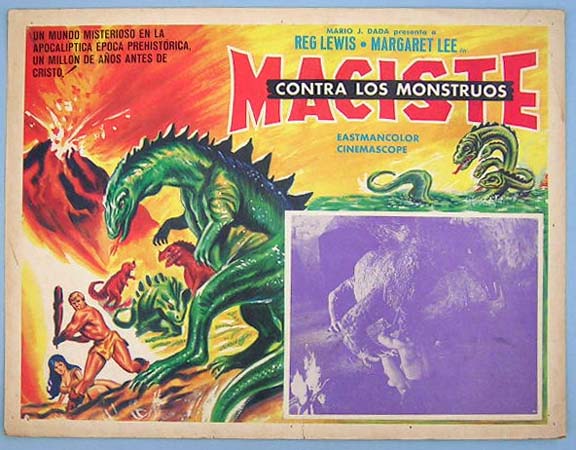Beautiful Mexican jumbo lobby card (12.5x16.5") from the 1962 Italian sword and sandal / sci-fi film, FIRE MONSTER VS. THE SON OF HERCULES, which starred Reg Lewis, Margaret Lee, Luciano Marin, Andrea Aureli and Birgit Bergen. $15 each |