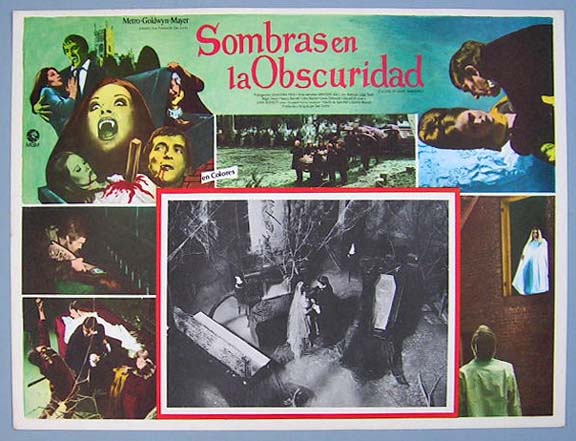 Beautiful Mexican jumbo lobby card (12.75x16.75") from the 1970 AIP horror film, COUNT YORGA, VAMPIRE, which starred Robert Quarry, Roger Perry, Michael Murphy, Michael Macready and Judy Lang. There is a chip missing from the upper right corner, but otherwise, the card is in great shape. $20 |