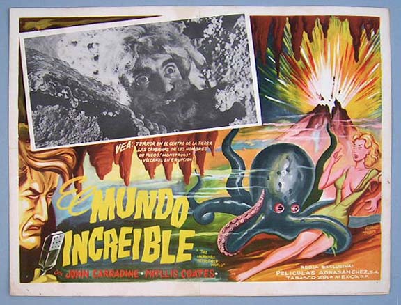 Beautiful Mexican jumbo lobby card (12.5x16.5") from the 1951 Lippert sci-fi film, UNKNOWN WORLD, which starred Bruce Kellogg, Otto Waldis, Jim Bannon, Tom Handley and George Baxter. $25 |