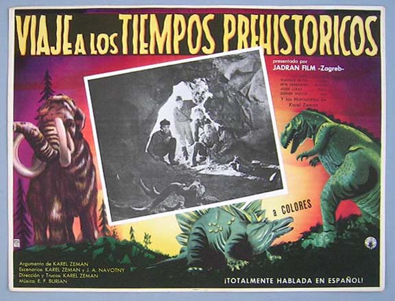 Beautiful Mexican jumbo lobby card (12.5x16.25") from the 1966 20th Century Fox / Hammer sci-fi / dinosaur film, ONE MILLION YEARS B.C., which starred Raquel Welch, John Richardson, Percy Herbert, Robert Brown and Martine Beswick. $25 |