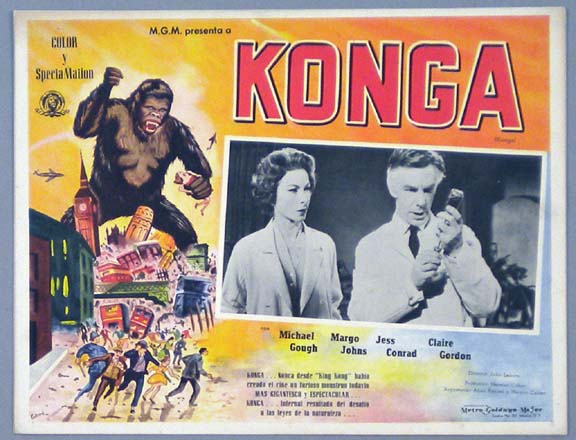 Beautiful Mexican jumbo lobby card (12.5x16.5") from the 1958 AIP Sci-fi film, WAR OF THE COLOSSAL BEAST, which starred Sally Fraser, Roger Pace, Duncan 'Dean' Parkin and Russ Bender. The movie, which was directed by Bert I. Gordon, was the sequel to the cult classic, THE AMAZING COLOSSAL MAN. $45 each |