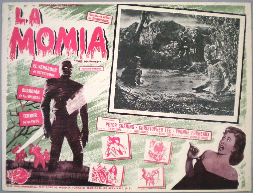 Beautiful Mexican lobby card (11x14") from the 1964 Hammer horror film, THE CURSE OF THE MUMMY'S TOMB, which starred Terence Morgan, Ronald Howard, Fred Clark, Jeanne Roland and George Pastell. $20 each |