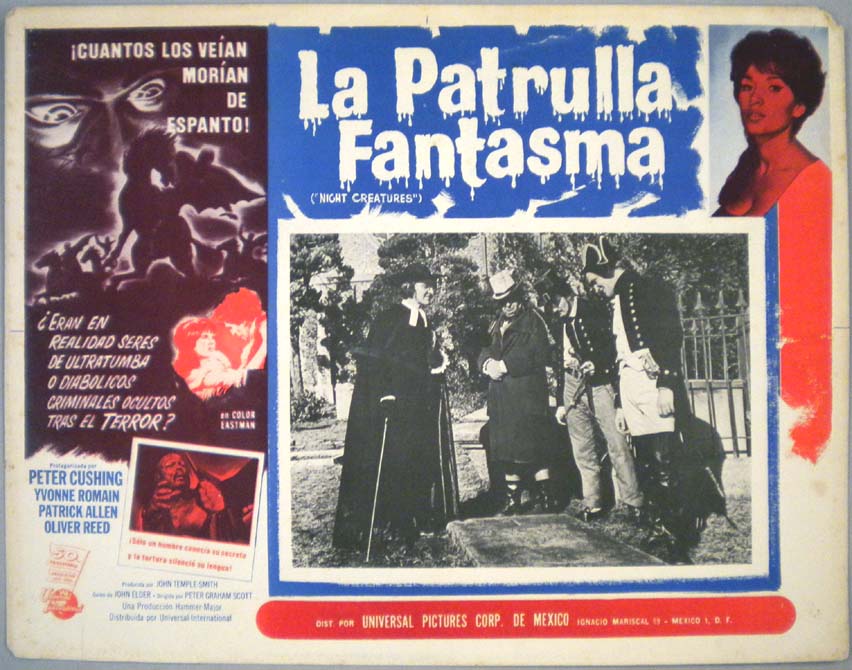 Beautiful Mexican jumbo lobby card (12x16") from the 1965 British horror film, DEVILS OF DARKNESS, which starred William Sylvester, Hubert Noel, Carole Gray, Tracy Reed and Diana Decker. $15 |