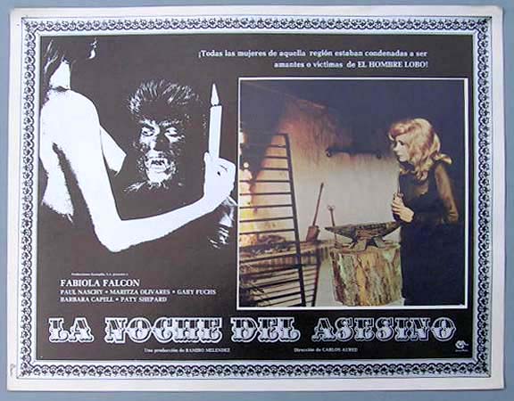 Beautiful Mexican jumbo lobby card (12.5x16.5") from the 1973 Spanish horror film, RETURN OF THE WEREWOLF, which starred Paul Naschy, Fabiola Falcon, Maritza Olivares, Jose Manuel Martin and Eduardo Calvo. $15 each |