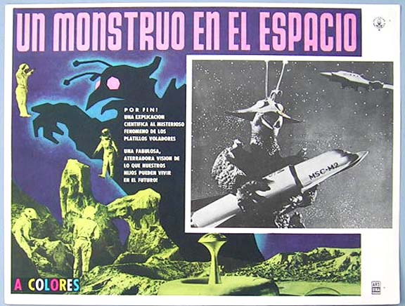 Beautiful Mexican jumbo lobby card (12.5x16.5") from the 1961 AIP sci-fi / space travel / alien monster film, PHANTOM PLANET, which starred Dean Fredericks, Coleen Gray, Anthony Dexter and Francis X. Bushman. $20 |