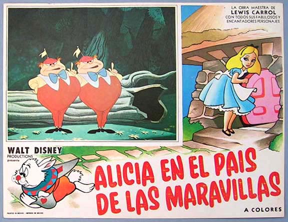 Beautiful Mexican jumbo lobby card (12.5x16.5") from the 1951 Disney animated film, Alice in Wonderland, which featured the voices of Kathryn Beaumont, Ed Wynn, Richard Haydn, Sterling Holloway and Jerry Colonna. $35 each |