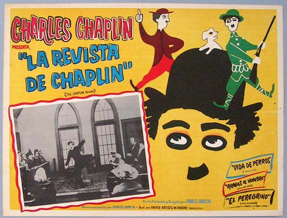 Beautiful Mexican jumbo lobby card (12.5x16.5") from a 1959 comedy compilation film, THE CHAPLIN REVUE, which featuring the films of Charlie Chaplin. $20 each |