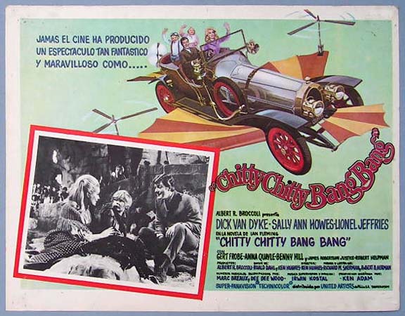 Beautiful Mexican jumbo lobby card (12.5x16.5") from the 1968 United Artists musical / fantasy film, CHITTY CHITTY BANG BANG, which starred Dick Van Dyke, Sally Ann Howes, Lionel Jeffries, Gert Frobe, Anna Quayle and Benny Hill. $25 each |