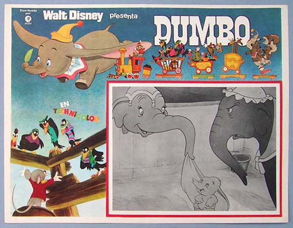 Beautiful Mexican jumbo lobby card (12.5x16.5") from the 1941 Disney / RKO animation film, DUMBO, which featured the voices of Billy Bletcher, Jim Carmichael, Hall Johnson Choir, Noreen Gammill and Eddie Holden. $35 each |