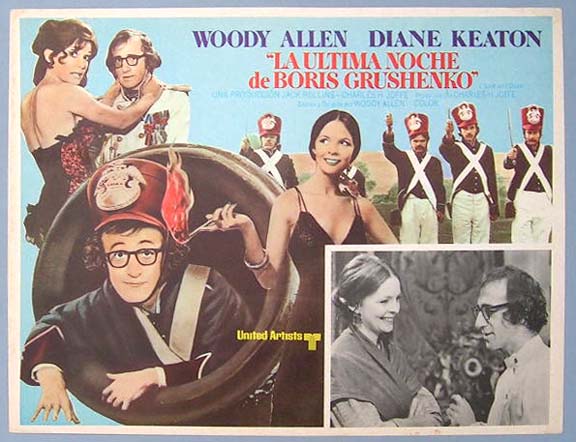 Beautiful Mexican jumbo lobby card (12.5x16.5") from the 1975 United Artists comedy / war film, LOVE AND DEATH, which starred Woody Allen, Diane Keaton, Olga Georges-Picot and Harold Gould. $15 each |