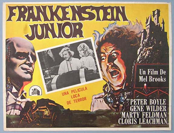 Beautiful Mexican jumbo lobby card (12.5x16.5") from the 1974 20th Century Fox comedy / horror / sci-fi film, YOUNG FRANKENSTEIN, which starred Gene Wilder, Peter Boyle, Marty Feldman, Madeline Kahn, Cloris Leachman and Teri Garr. The film was directed by Mel Brooks. $25 each |