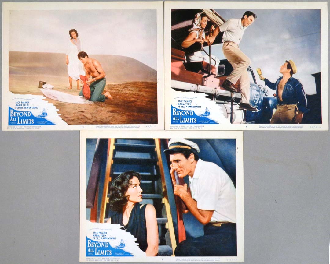 Attractive set of 8 Mexican film lobby cards (each card 11x14") which feature colorful artwork and great inset scenes picturing the main stars. You get all 8 cards for one low price! (Any glare visible in the photo was caused by a problem with our camera -- it is not a flaw on the cards themselves)... This movie starred Julio Aleman, Patricia Aspillaga, Claudia Martell, Juan Gallardo and Tito Junco. $20 (for 8 cards) |