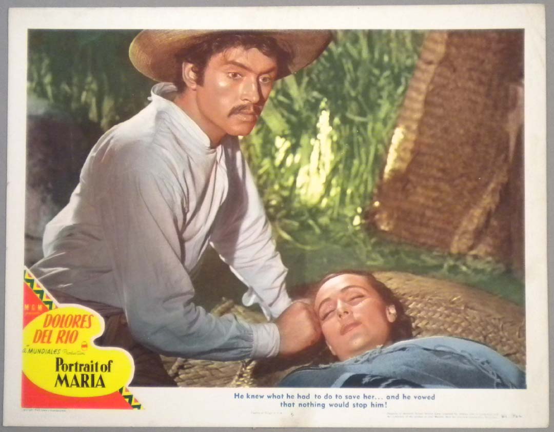 Rare lobby card from the 1944 Mexican fdrama / romance ilm, PORTRAIT OF MARIA, which was released in Mexico as, Maria Candelaria. The card features a wonderful image of Pedro Armendariz kneeling beside a sleeping Dolores del Rio... This movie also starred Pedro Armendariz, Alberto Galan, Margarita Cortes and Miguel Inclan. $20 |