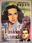 Beautiful Mexican film poster features a classic image of Maria Felix -- perhaps the biggest star in the history of Mexican cinema. The onesheet also pictures a stylized image of a nude woman -- possibly also Ms. Felix. A lovely poster with vibrant coloring. This is a lightly used poster with mild wear and some tape on back reinforcing separation at the center folds, resulting in slight marks of discoloration on the front. Also, someone wrote the film title on the back of the poster, and the lettering has bled through a bit and is now partially visible on the front -- near the word PASION in the title area. However, this flaw is not very distracting, and it could be repaired with minor restoration. Otherwise, the colors are clean and bright and the poster looks great... This movie starred Maria Felix, Carlos Thompson, Eduardo Cuitino and Hector Calcano. $60 |