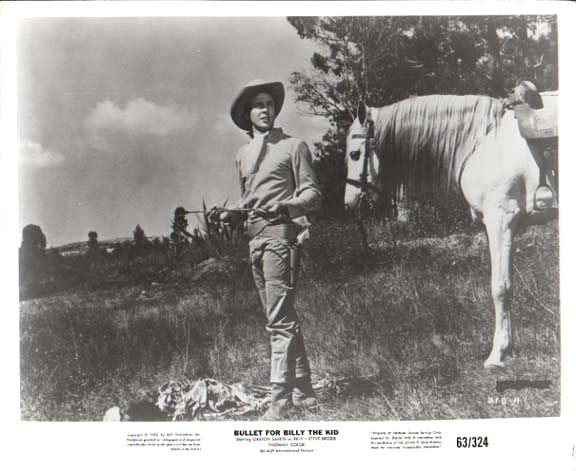 Original B&W still from a 1959 Mexican western film... This movie starred Gaston Santos, Rita Macedo, Jaime Fernandez, Mauricio Garces and Rayo de Plata. This photo is from the USA released of the film, under the title; Bullet for Billy the Kid. $15 |