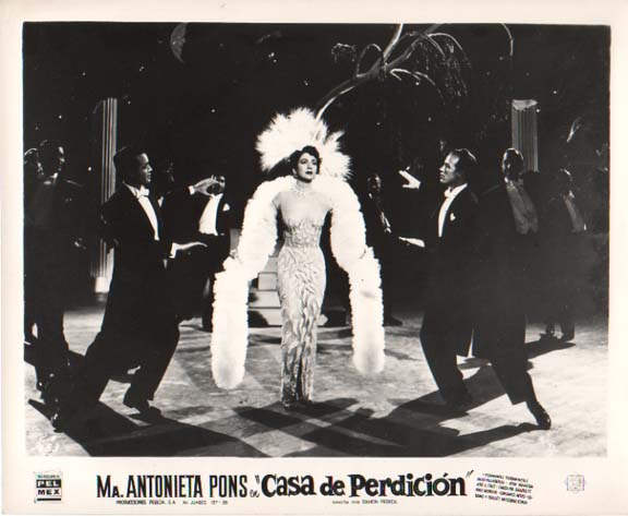 Original B&W still from a 1954 Mexican film. Great shot of sexy Ms. Pons wearing the same see-thru dress pictured on the onesheet poster!... This movie starred Maria Antonieta Pons, Fernando Fernandez, Julio Villarreal and Jose G. Cruz. $20 |
