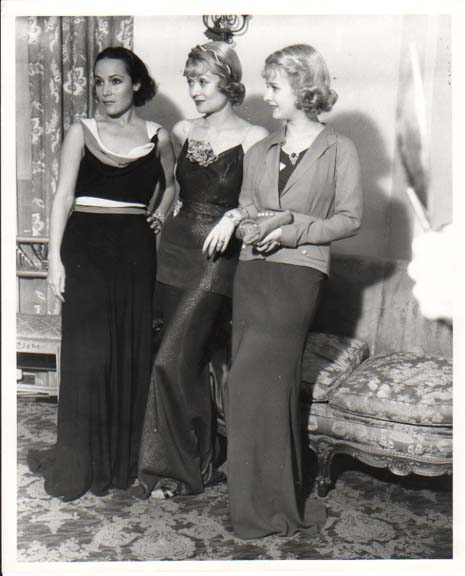 Great 1930s portrait of Dolores del Rio, Joan Bennett and Constance Bennett. This photo does not appear to be from the 1930s. Rather, we believe it was issued by United Press International -- probably during the 1960s. $15 |