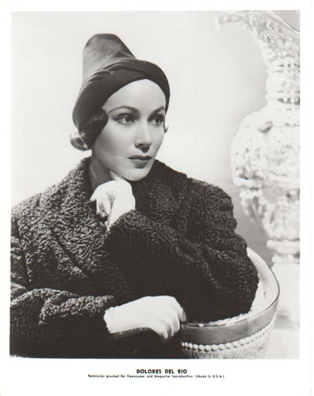 Great 1930s studio portrait of Dolores del Rio -- one of the best we've seen. This photo does not appear to be an original from the 1930s. Rather, we believe it was issued by the Museum of Modern Art -- probably during the 1960s. $25 |
