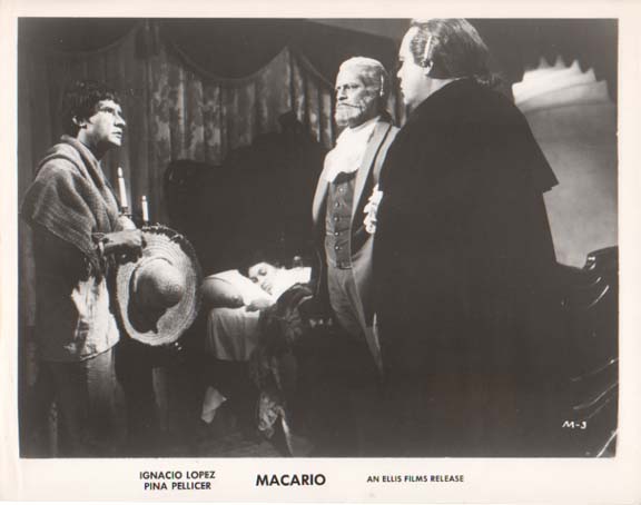 Original B&W still from a 1953 Mexican biography film. The photo has mild signs of use -- a very light crease near the lower left corner and a few tiny surface marks -- but these minor flaws are not very distracting... This movie starred Maria Elena Marques, Humberto Almazan, Domingo Soler, Rodolfo Landa and Carlos Riquelme. $15 |