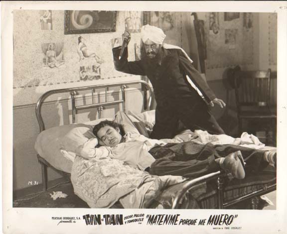 Original B&W still from a 1951 Mexican comedy film. The photo has a few pinholes near the corners, but otherwise, it is clean and bright... This movie starred German 'Tin Tin' Valdes, Oscar Pulido, Yolanda 'Tongolele' Montes, Marcelo Chavez and El Enanito Tun-Tun. $15 |