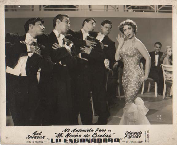 Original B&W still from a 1953 Mexican comedy film. The photo has some soiling and a few pinholes along the borders -- but this does not affect the image area -- which is clean and bright... This movie starred Maria Antonieta Pons, Abel Salazar, Eduardo Fajardo and Consuelo Guerrero de Luna. $15 |