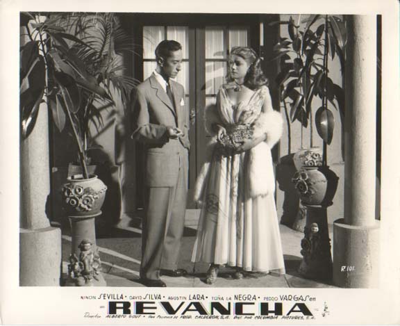 Original B&W still from a 1948 Mexican noir / crime film. Light signs of use -- but no major flaws... This movie starred Ninon Sevilla, David Silva, Agustin Lara, Tona La Negra and Pedro Vargas. $15 |