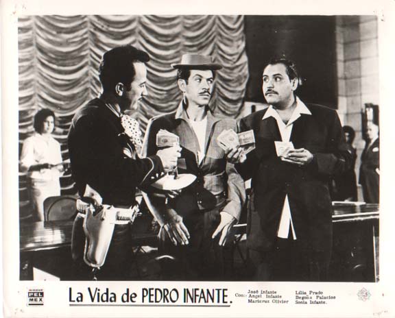 Original B&W still from an unidentified Mexican ranchera film starring Pedro Infante and Jorge Negrete. This movie was probably produced in the 1940s. $20 |