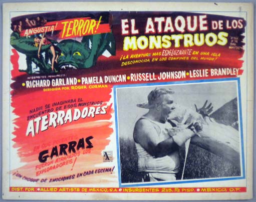 Beautiful Mexican lobby card (11x14") from the 1955 American Released Group sci-fi film, THE BEAST WITH 1,000,000 EYES, which starred Paul Birch, Lorna Thayer, Dona Cole, Leonard Tarver, Dick Sargent. The film was directed by Roger Corman. $75 |