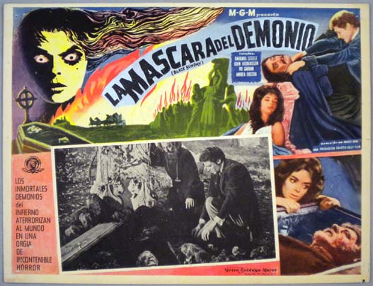 Beautiful Mexican jumbo lobby card (12.5x16.5") from the 1960 Italian horror film, BLACK ROSE, which starred Barbara Steele, John Richardson, Andrea Checchi and Ivo Garrani. The film was directed by Mario Bava. The original Italian title was, La Maschera del Demonio. $35 |