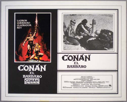 Original Mexican lobby card (11x14") from the 1982 Universal action / fantasy film, CONAN THE BARBARIAN, which starred Arnold Schwarzenegger, James Earl Jones, Max von Sydow, Sandahl Bergman, Ben Davidson. $20 |