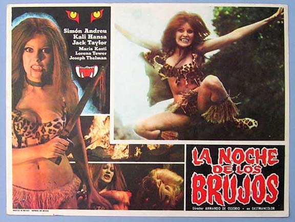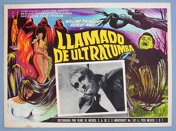 Beautiful Mexican jumbo lobby card (12x16") from the 1965 British horror film, DEVILS OF DARKNESS, which starred William Sylvester, Hubert Noel, Carole Gray, Tracy Reed and Diana Decker. $15 |