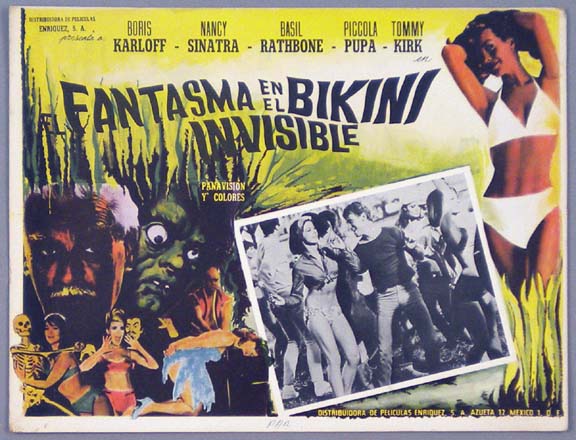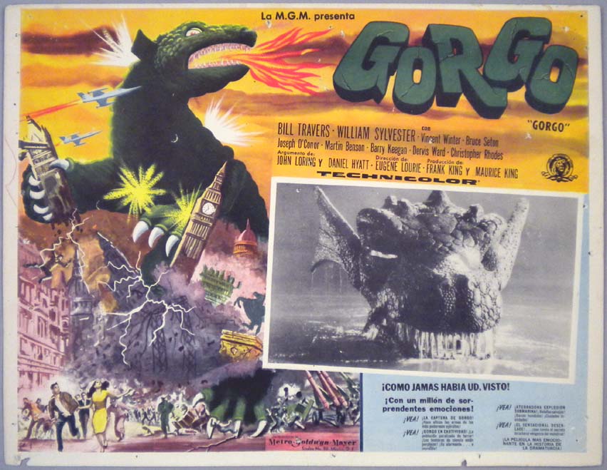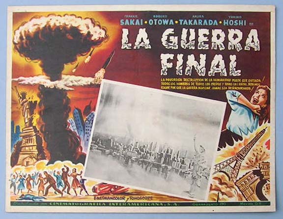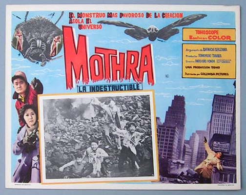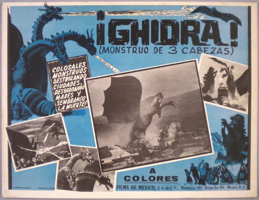 Great Mexican jumbo lobby card (13x15.5") from the 1966 Toho / Japanese sci-fi / giant monster film, WAR OF THE GARGANTUAS, which starred Russ Tamblyn, Kumi Mizuno, Kenji Sahara, Nobuo Nakamura, Jun Tazaki and Kipp Hamilton. $20 each |