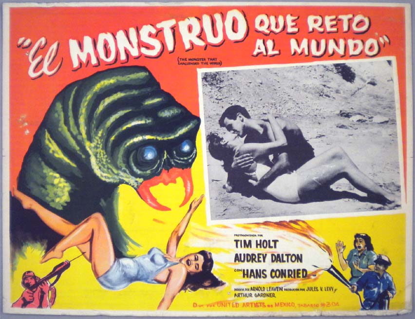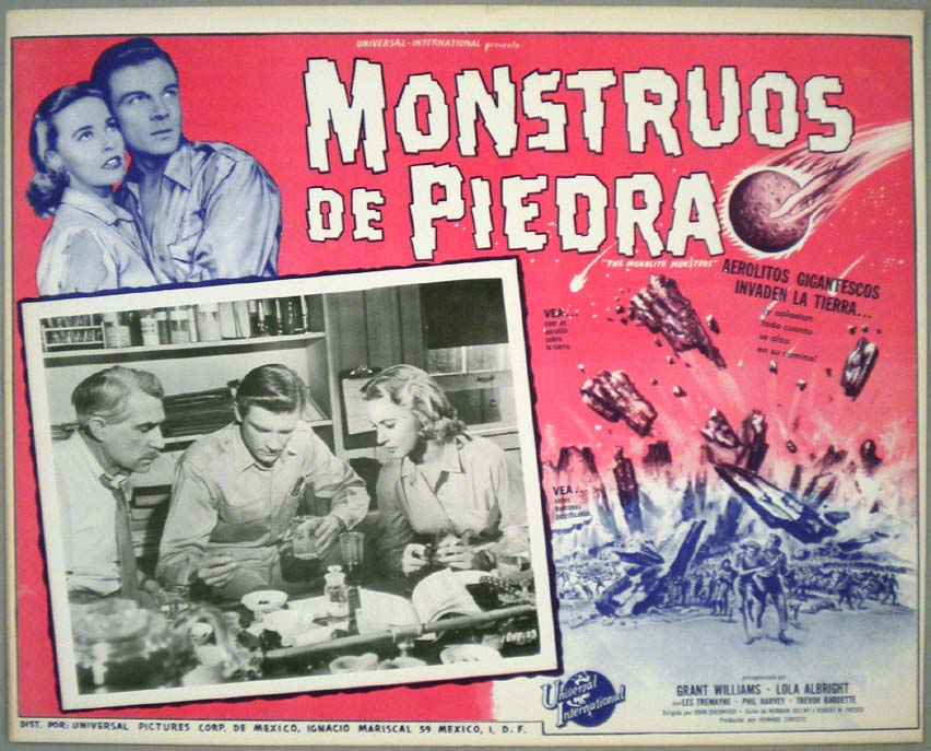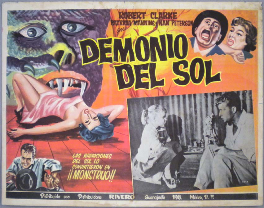 Beautiful Mexican jumbo lobby card (12x15.5") from the 1958 AIP sci-fi film, THE ASTOUNDING SHE-MONSTER, which starred Robert Clarke, Kenne Duncan, Marilyn Harvey, Jeanne Tatum and Shirley Kilpatrick. $45 |