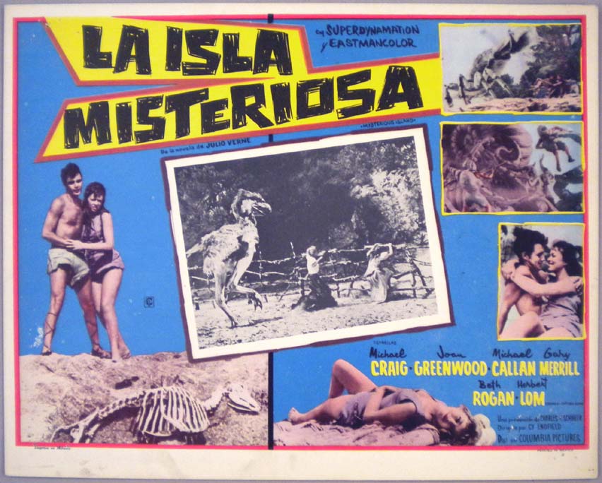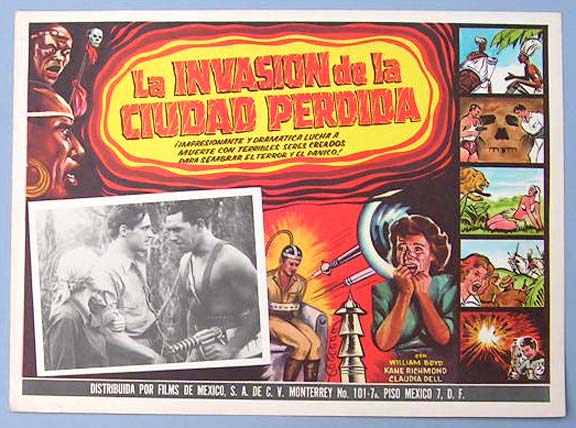 Rare Mexican jumbo lobby card (12.75x16.5") from the 1951 Eagle-Lion adventure / sci-fi / dinosaur film, TWO LOST WORLDS, which starred James Arness, Kasey Rogers aka Laura Elliot, Bill Kennedy and Gloria Petroff. $25 |