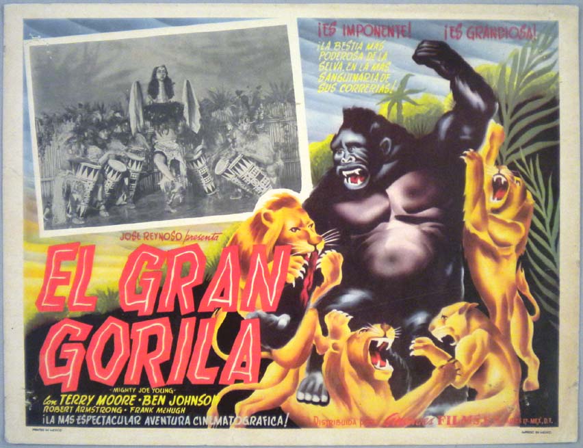 Beautiful Mexican jumbo lobby card (12x15.75") from the 1952 Realart sci-fi / comedy / jungle adventure film, BELA LUGOSI MEETS A BROOKLYN GORILLA, which starred Bela Lugosi, Duke Mitchell, Sammy Petrillo, Charlita, Muriel Landers, Al Kikume and Ray 'Crash' Corrigan. $35 |