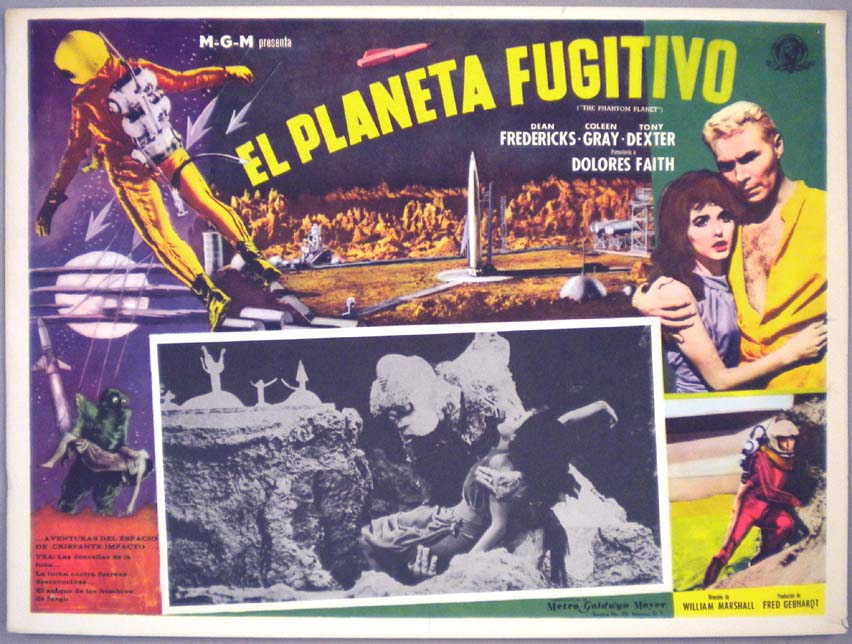 Beautiful Mexican jumbo lobby card (12.5x16.5") from the 1961 AIP sci-fi / space travel / alien monster film, PHANTOM PLANET, which starred Dean Fredericks, Coleen Gray, Anthony Dexter and Francis X. Bushman. $20 |