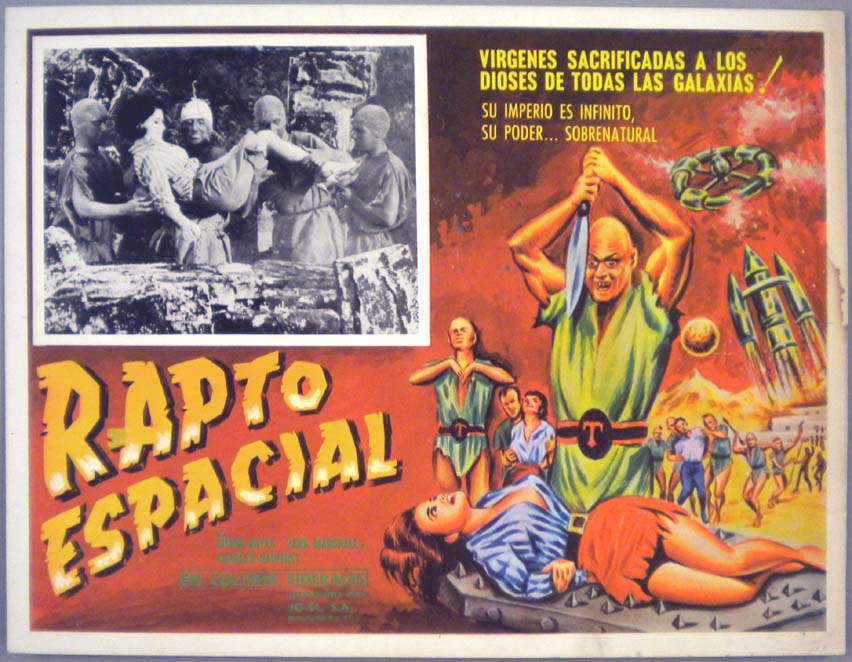 Beautiful Mexican jumbo lobby card (12.5x16.5") from the 1959 AIP sci-fi / monster film, ANGRY RED PLANET, which starred Gerald Mohr, Naura Hayden, Les Tremayne, Jack Kruschen and Paul Hahn. $25 each |