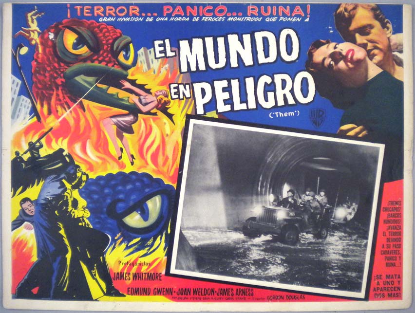 Beautiful Mexican jumbo lobby card (12.5x16.5") from the 1954 Warner Brothers sci-fi / monster film, THEM!, which starred James Whitmore, Edmund Gwenn, Joan Weldon, James Arness, Onslow Stevens and Olin Howland. $95 |