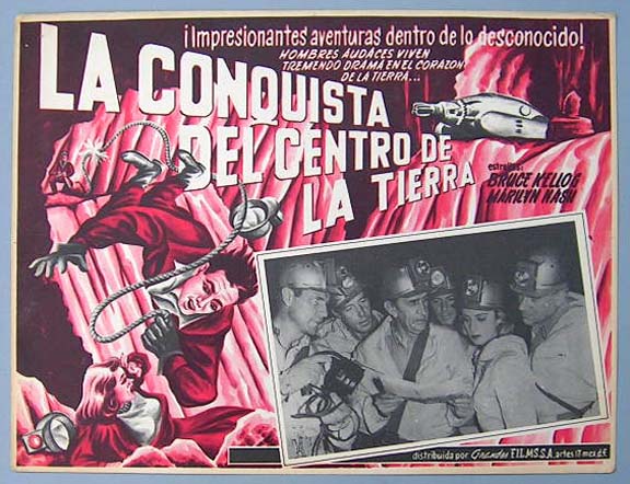 Beautiful Mexican jumbo lobby card (12.5x16.5") from the 1951 Lippert sci-fi film, UNKNOWN WORLD, which starred Bruce Kellogg, Otto Waldis, Jim Bannon, Tom Handley and George Baxter. $25 |