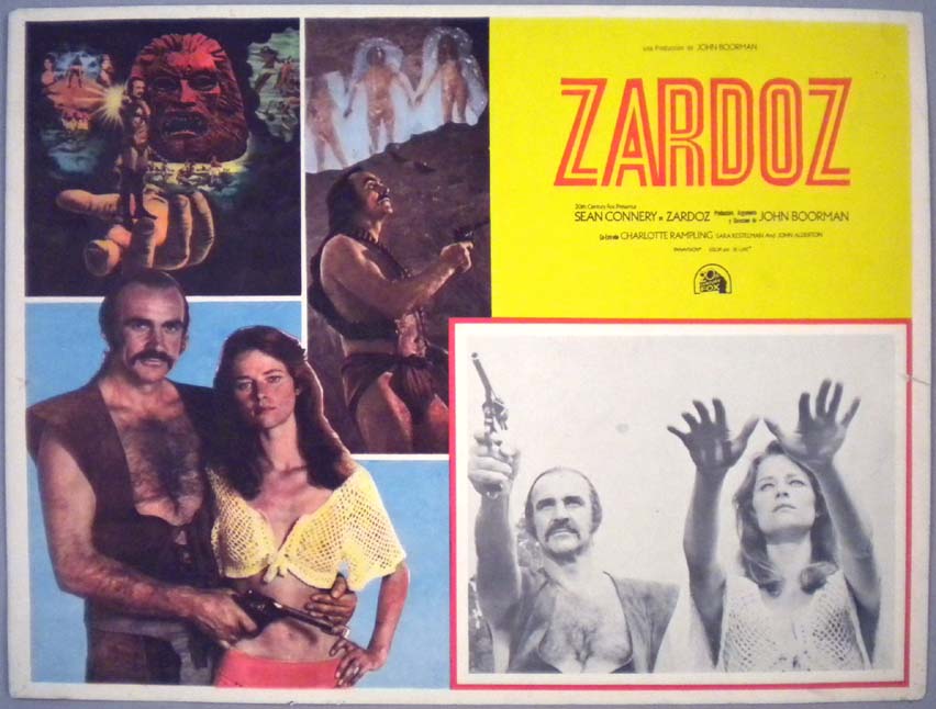 Beautiful Mexican jumbo lobby card (12.5x16.5") from the 1974 20th Century Fox sci-fi / fantasy film, ZARDOZ, which starred Sean Connery, Charlotte Rampling, Sara Kestelman and John Alderton. $15 |