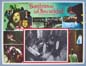 Rare Mexican jumbo lobby card (12.75x16.5") from the 1959 Howco horror / gimmick film, TERROR IN THE HAUNTED HOUSE, which starred Gerald Mohr, Cathy O'Donnell, William Ching, John Qualen and Barry Bernard. TERROR IN THE HAUNTED HOUSE was also known as, MY WORLD DIES SCREAMING. The film featured a gimmick called, Psychorama -- which consisted of subliminal images that would appear briefly between frames of the film. $25 |