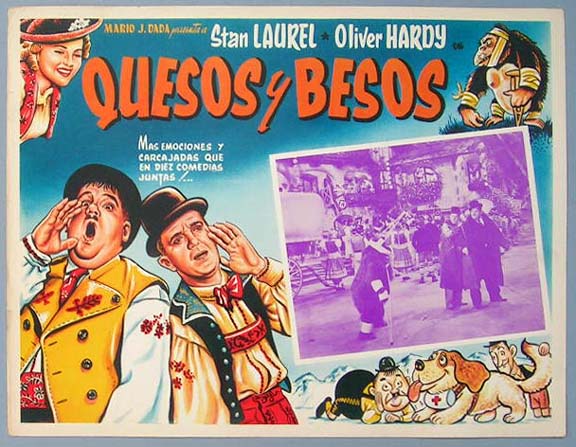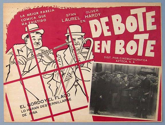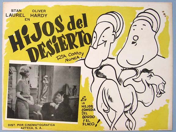 Beautiful Mexican jumbo lobby card (12x16") from the 1933 Hal Roach / MGM comedy film, SONS OF THE DESERT, which starred Stan Laurel, Oliver Hardy, Charley Chase, Mae Busch, Dorothy Christy and Lucien Littlefield. $20 each |