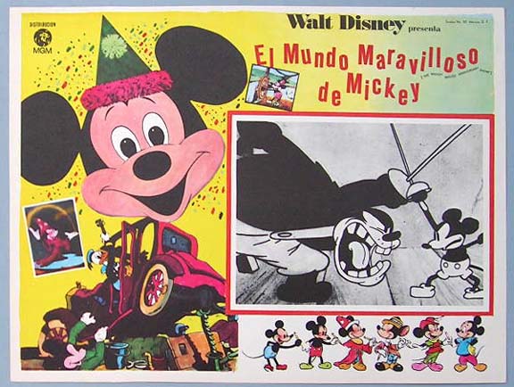 Beautiful Mexican jumbo lobby card (12.5x16.5") from the 1968 Disney animated film, The Mickey Mouse Anniversary Show, which featured Dean Jones. $20 each |