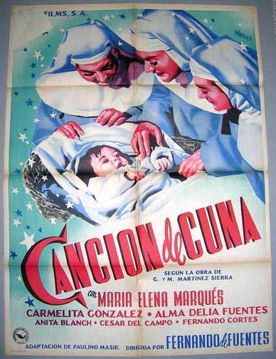 Attractive comedy film poster features great close-up images of the two leads -- Infante and Quintana. This onesheet has a great romantic image of a Mexican movie icon, Pedro Infante. The bottom horizontal fold line has reinforced on the back by a piece of masking tape, which has bled through a bit to the front -- but this flaw is not too distracting. Otherwise, the colors are clean and bright... This movie starred Pedro Infante, Rosita Quintana, Joaquin Pardave, Liliana Duran and Anita Blanch. $40 |